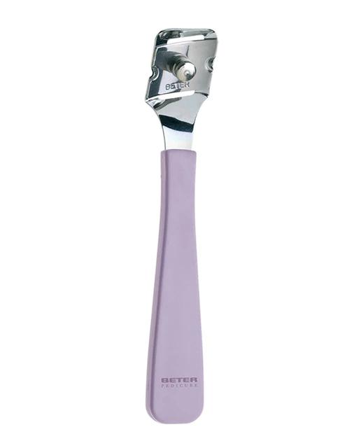 Eliminar durezas y callosidades es más fácil que nunca con el cortacallos Beter. Su diseño exclusivo incorpora un cabezal con bisagra que facilita el cambio de la cuchilla. Incluye un protector de cabezal que además permite guardar una cuchilla de recambio. El mango es ergonómico, lo que lo hace más confortable y práctico. El color del mango del cortacallos será aleatorio.