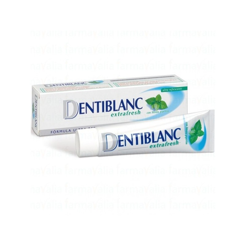 Dentiblanc Extrafresh es un dentífrico de tratamiento blanqueador formulado para aquellas personas que desean obtener una sensación de frescura intensa durante su higiene dental diaria. Su fórmula ultra refrescante, combina mentas de acción refrescante con ingredientes que aseguran una higiene profunda y un efecto blanqueador, todo ello sin dañar el esmalte dental. Los componentes blanqueadores no contienen ácidos ni peróxidos, manteniendo un pH neutro. Se recomienda el uso diario de Dentiblanc Extrafresh con la misma frecuencia que un dentífrico normal.